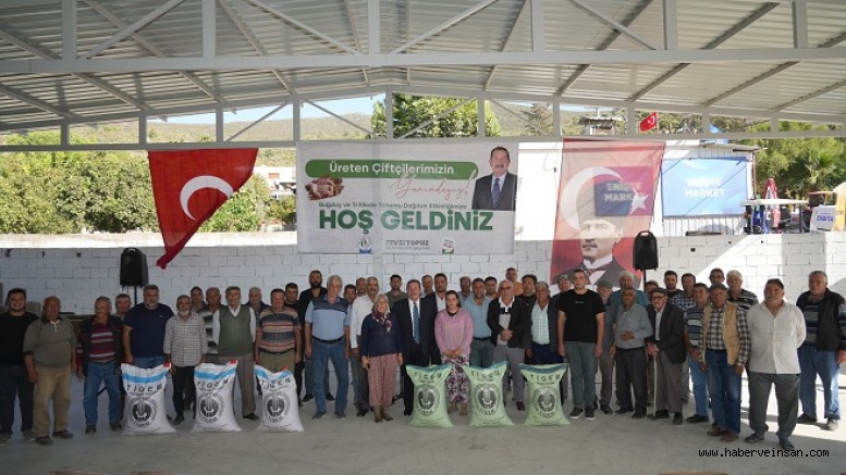 İçme Mahalle Muhtarı Coşkun Üstündağ’ın ardından konuşan Milas Belediye Başkanı Fevzi Topuz “Tarımsal Hizmetler Müdürlüğümüzün koordine ettiği tohum dağıtım töreninde hep birlikteyiz. Amacımız köylülerimizin ve çiftçilerimizin içinde bulunduğu zor koşulları bir nebze olsun hafifletmektir. Daha önceki süreçte de köylülerimize hem saman olarak hem yem olarak dağıtım gerçekleştirdik. Bazı mahallelerimizde de buğday ve tritikale tohumu dağıttık. Bugünde Savran, İçme ve Yaşyer köylerimizde tohumlarımızı dağıtıyoruz. Sürdürülebilir kalkınma anlayışıyla tarımsal faaliyetlere ve üreten çiftçilerimize destek olmaya devam edeceğiz. Tüm çiftçilerimize bereketli hasatlar diliyorum,” dedi.