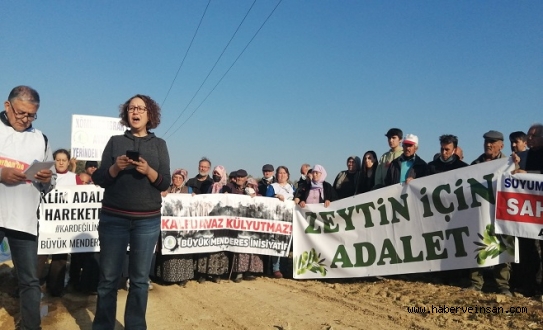 Bugün burada, kömür için topraklarına el konulmak istenen; zeytinlikleri, tarım alanları, dereleri, vadileri, ormanları yok edilmek istenen üç köy olarak bulunuyoruz. Denizli Avdan, Milas İkizköy ve Yatağan Turgut köylüleri ve yaşam savunucuları olarak kömürün topraklarımıza el koymasına, yaşam hakkımıza el koymasına karşı yan yana duruyoruz.