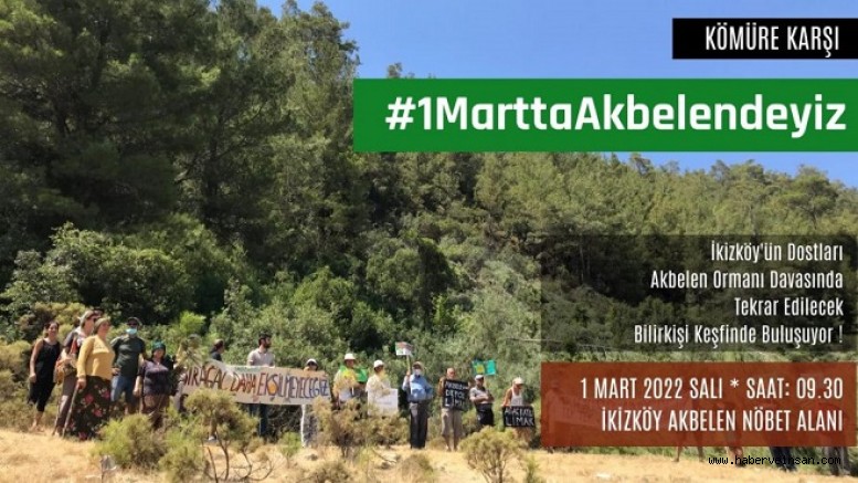 Yeniköy Kemerköy Elektrik Üretim ve Ticaret AŞ’nin (YK Enerji) Muğla Milas’taki iki termik santraline kömür sağlamak amacıyla genişletilmek istenen kömür madeni sahasının, İkizköy mahallesindeki Akbelen Ormanını yok etmemesi için İkizköylüler’in hukuk mücadelesi sürüyor. Geçtiğimiz Nisan ayında, şirkete Akbelen Ormanında maden işletme izni veren Tarım ve Orman Bakanı imzalı kararın iptali için açılan dava devam ediyor. Davanın tekrarlanan bilirkişi keşfi 1 Mart 2022 Salı günü saat 10.00’da İkizköy’de gerçekleştirilecek. İkizköy Çevre Komitesi, tüm çevre dostlarını, tüm doğaseverleri, tüm yaşam savunucularını; 1 Mart Salı günü keşfin yapılacağı Akbelen’e davet etti.