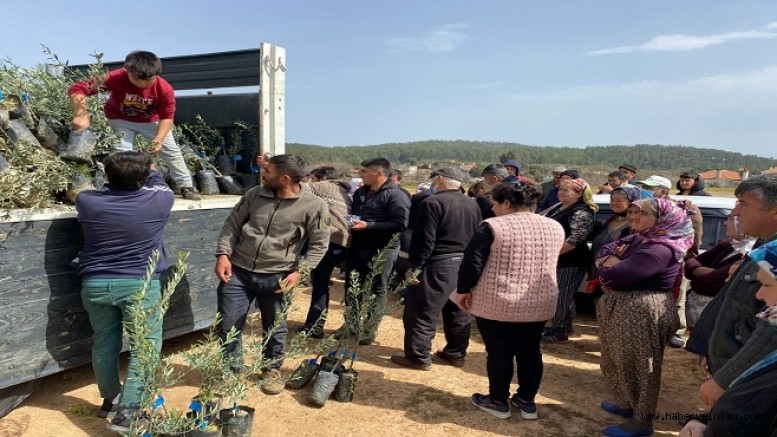 Müdürlük ekipleri Fesleğen, Akçakaya ve Gürceğiz mahallelerinde yangın afetinden olumsuz olarak etkilenen ve zeytinlikleri hasar gören üreticilere yönelik gerçekleşen etkinlikte 1800 adet memecik türü zeytin fidanı dağıttı.