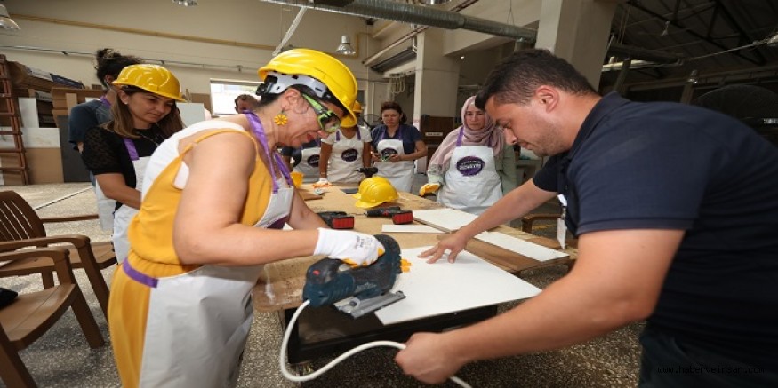 Kursiyer Funda Çelen, “Bu atölyelerle elektrik, tesisat, boya ve marangozluk alanlarında eğitimler aldık. Öncelikle bu çalışmalar için Büyükşehir Belediye Başkanımız Ahmet Aras’a teşekkür ediyorum. Bugün yaptığımız farkındalık çalışması da çok değerli. Kadın ve erkek arasında hiçbir zaman ayrımcılık olmamalı.” şeklinde konuştu.